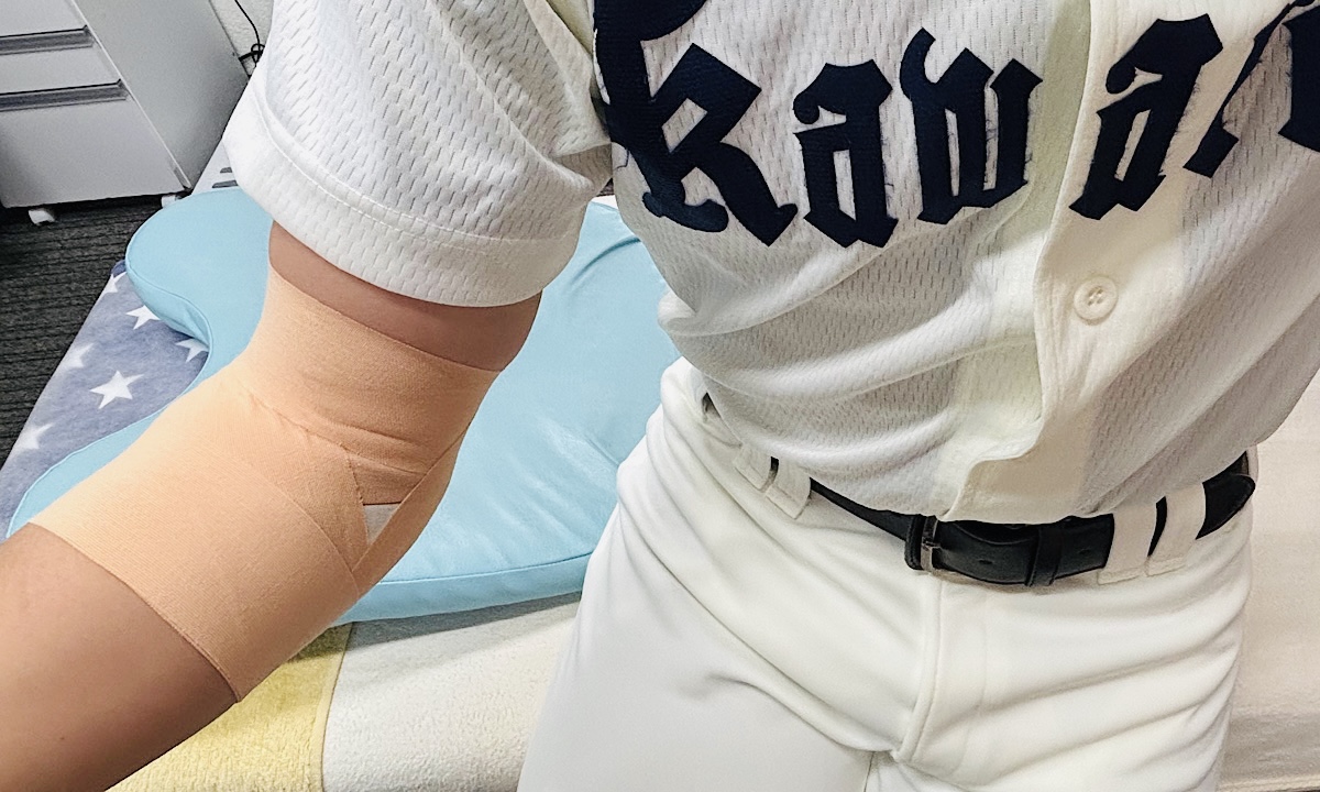 野球の試合前に野球肘の予防のテーピングをさせて頂きました。