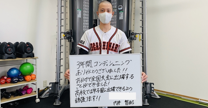 3年間コンディショニングありがとうございました! 2023年3月30日 西宮市 男性 野球部内井君は中学生の硬式野球チームに入団してから体のコンディショニングに来られるようになりました。特にピッチャーとして肩の治療やコンディショニングをさせて頂きました。3年生では全国大会にも出場し、素晴...